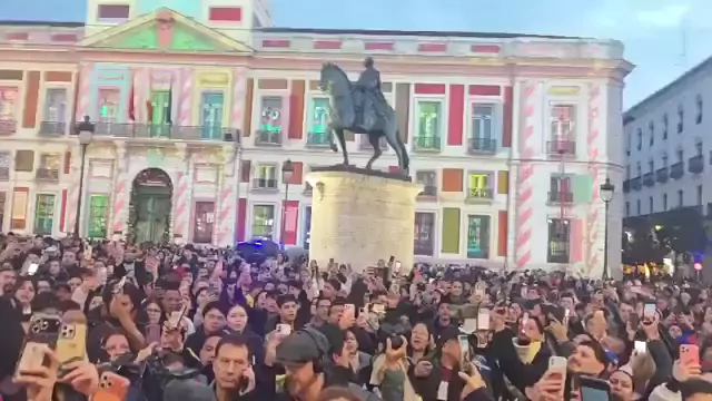 🇪🇸🇻🇪 | Venezuelanos em Madri se reúnem para comemorar a captura de Nicolás Maduro. Assim soa o Hino Nacional: