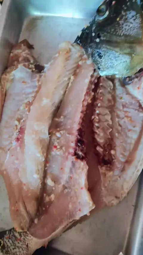 tucunaré assado com requeijão 😋 #SouMulher #peixeassado #peixe