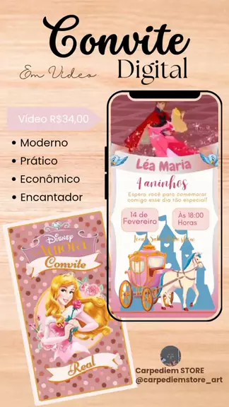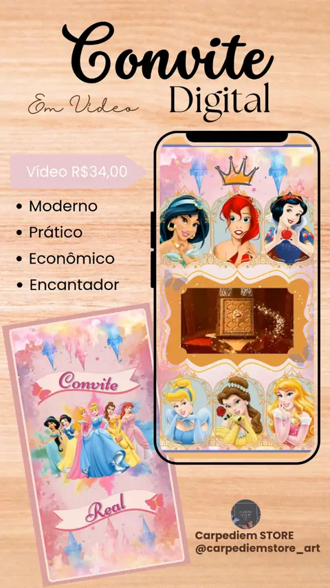 Convite Personalizado em Vídeo Princesas da Disney. Surpreenda com estilo! Vem comemorar esse dia tão especial com a Carpediem Store. Conheça nossos Convites Digitais. Eles farão toda a diferença na hora de convidar seus amigos e familiares para a festa de aniversário do seu filho(a). Um Jeito Especial de Compartilhar Essa Alegria! #convite #convites #conviteanimado #convitedigital #princesasdisney
