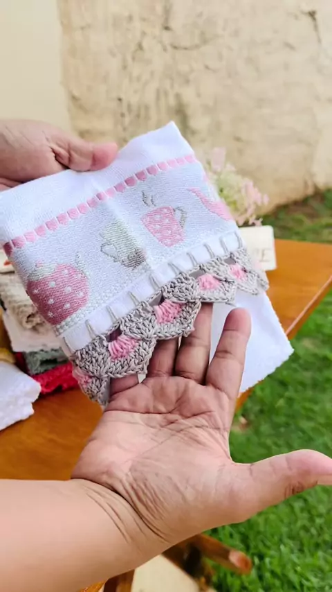 Pano de prato com barrado em crochê valor R$ 39,00 cada. 📲19 996516221 #creatorsearchinsights #panodeprato #crochedaroseane