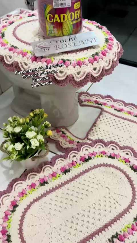 Kit de banheiro Pronta entrega valor R$ 195,00 + frete Para comprar barbantes loja Rose arts Aviamentos celular 📲 47 99206-7121 #tapetedecroche #crochedaroseane #croche