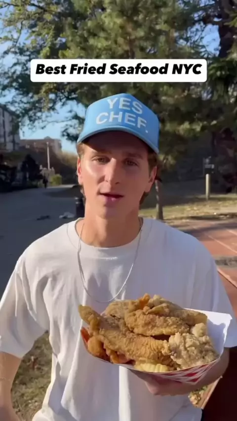 🍤 Melhor fruto do mar frito de NY? Estamos no Make My Fish, em Harlem! Alex, o dono, usa a receita da avó há 40 anos, sem mudar nada. Tudo aqui é super temperado e incrível! Começamos com o maior sanduíche de peixe frito do mundo 🌊 — bacalhau tão saboroso que nem precisa de molho tártaro. Depois, o famoso Triple Play por $25: camarão frito crocante e levemente doce, além de um frango frito de outro nível – crocante por fora, suculento por dentro. Alex é um mago na cozinha! 🧙‍♂️✨ #FrutosDoM