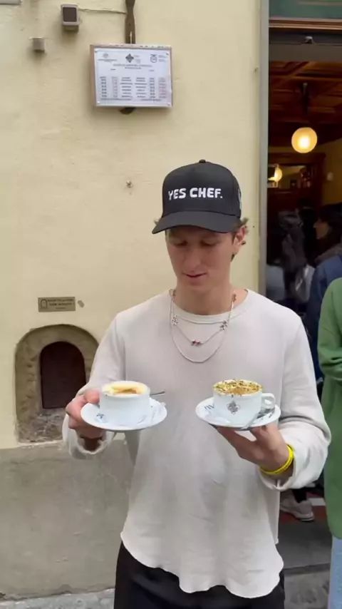 Estamos em Florença provando o que dizem ser o melhor affogato do mundo na Gelateria Vivoli, uma loja com 100 anos de história que vende 1.700 affogatos por dia. O affogato é feito com gelato caseiro e café expresso italiano fresco, e custa 6 euros. É uma combinação incrível de sabores e texturas. #MarvvilaNoKwai #PodeFicarComARazãoNoKwai #amizadeadistancia