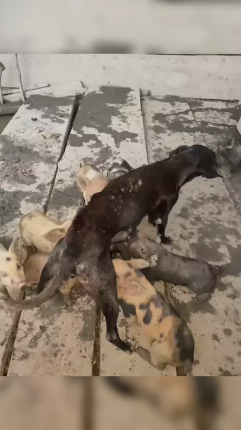 cachorra amamentando porcos