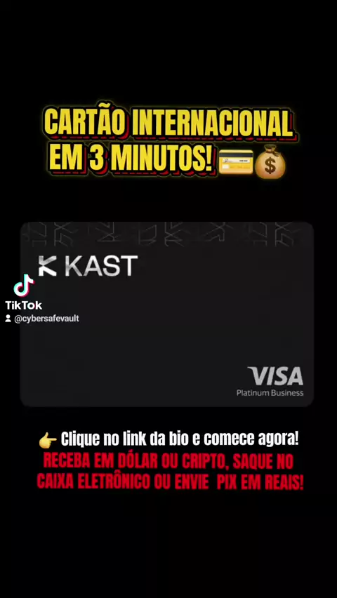 CARTÃO INTERNACIONAL EM 3 MINUTOS! 💳💰 RECEBA EM DÓLAR OU CRIPTO, SAQUE NO CAIXA ELETRÔNICO OU ENVIE PIX EM REAIS! Quer ter cartões internacionais, receber em dólar ou criptomoedas e ainda fazer PIX instantâneo no Brasil? 🇧🇷🌎 Com a KAST, você cria sua conta, faz o KYC e ativa seu cartão virtual em 3 minutos. Gaste globalmente, ganhe até 10% de cashback, e tenha tudo direto no seu celular — sem burocracia! 💳⚡ 👉 Clique no link da bio e comece agora! https://go.kast.xyz/VqVO/TADOVISI