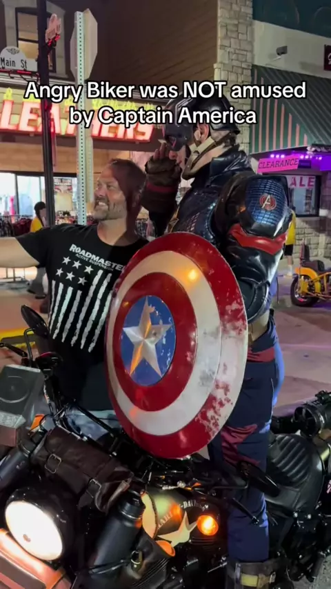Angry Biker was NOT Amused by Captain America#sturgis#motorcycle#motorcyclesof#bikes#cycledrag