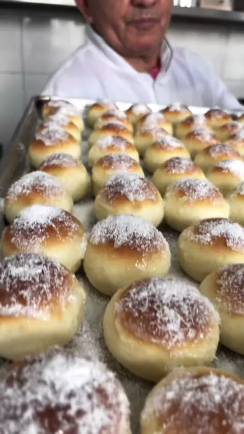 Pão minuto Ingredientes: 1kg de farinha, 130g de açúcar, 10g de sal, 100g de manteiga, 2 ovos, 40g de fermento fresco, 450ml de água, 80g de coco e 100ml de leite condensado #pão #padaria #Receita