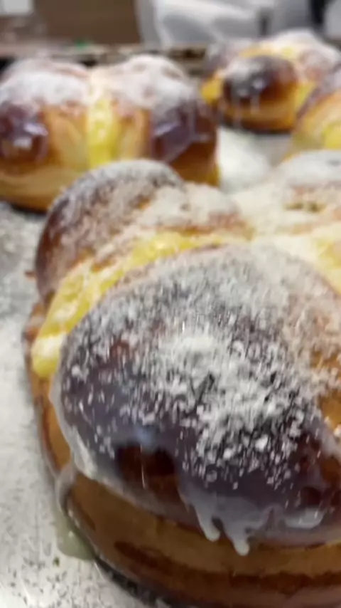 Rosca doce Ingredientes: 1kg de farinha, 150g de açúcar, 10g de sal, 100g de margarina, 50g de leite em pó, 3 ovos, 30g de fermento fresco, 450ml de água, 200g de creme de confeiteiro e 50g de coco ralado #rosca #doce #Receita