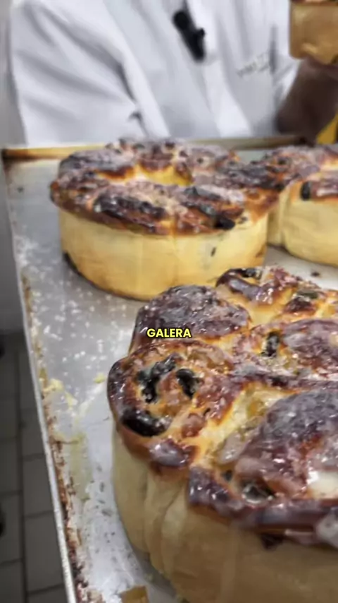 Rosca natalina Ingredientes: 1kg de farinha, 140g de açúcar, 10g de sal, 80g de margarina, 3 ovos, 30g de fermento fresco, 400ml de água, 150g de creme de confeiteiro, 250g de uva passa e 300g de frutas cristalizadas #rosca #natal #receita