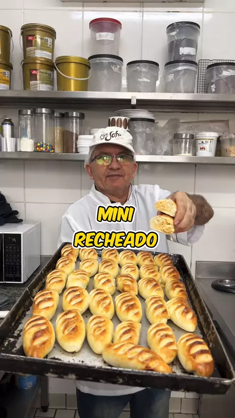 Mini ferradura doce Ingredientes: 1kg de farinha, 140g de açúcar, 10g de sal, 100g de manteiga, 3 ovos, 40g de fermento fresco, 450ml de água, 200g de creme de confeiteiro e 100g de doce de leite #pão #padaria #Receita