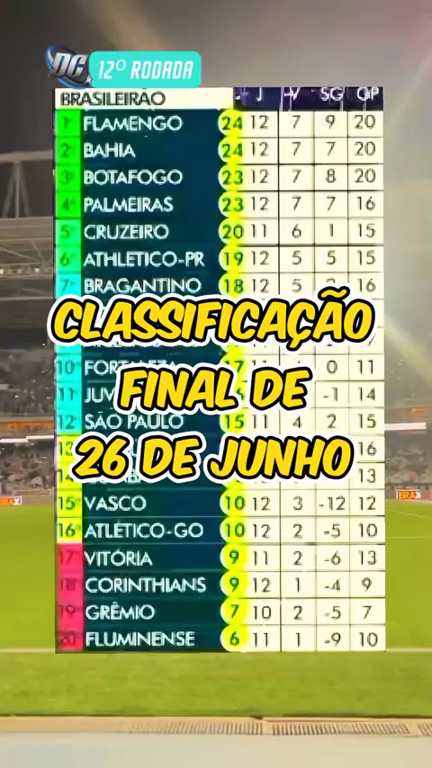 Finalizado os jogos de 26 de junho,12⁰ Rodada,confira a classificação Atualizada. #Brasileirão2024 #futanalise #vocêsabia #20240626