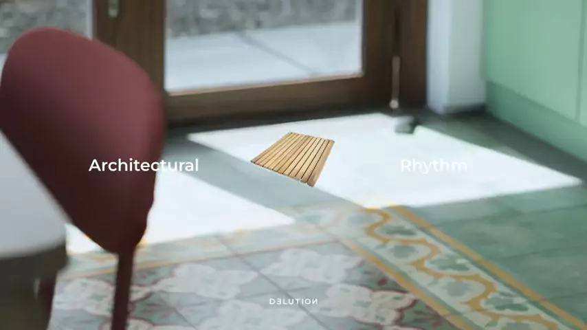 Bukan hanya dari bentuk, tetapi juga dari struktur, material, cahaya, hingga elemen ruang yang saling berkesinambungan. Pada desain ini, ritme dibangun melalui repetisi kisi-kisi, struktur kolom, modul panel, permainan cahaya dari skylight, hingga kehadiran elemen air dan furniture pendukung. Setiap elemen disusun dengan jarak dan proporsi yang konsisten, menciptakan alur visual yang terarah dan harmonis. Bagi Delution Arsitek, ...