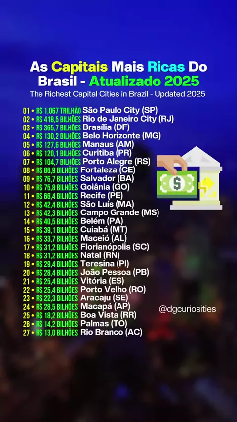 As Capitais Mais Ricas Do Brasil - Atualizado 2025 #capitais #ricas #brasil #dgcuriosities