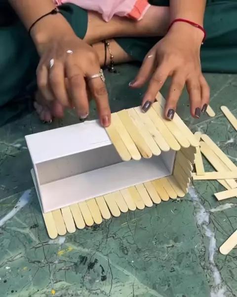 Porta-canetas DIY feito com colheres de sorvete | Reutilizar caixa de telefone móvel # diycrafts # organizador # porta-canetas