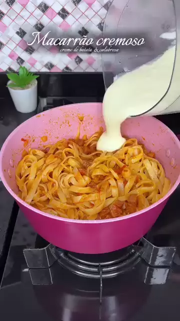 macarrao cremoso com creme de batata e calabresa #KwaiChef2025 #macarrão #maisviews #viraliza #cozinha