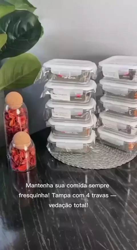 Kit Potes Hermético,com travas #potes #marmitafitness #hermetico
