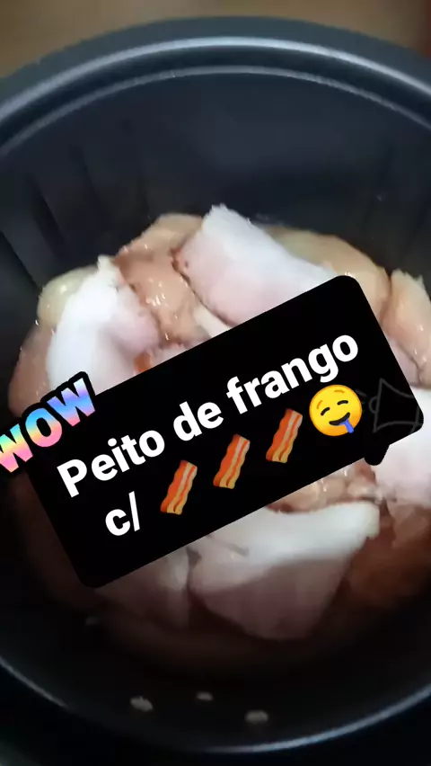 #criadorativo #Receita #kwai Peito de frango com bacon Pode ser feito no forno tbem 1 kg de frango temperado a gosto 10 fatias de bacon coloque na assadeira ou na Ayer frie e leve apta assar até dourar bom apetite