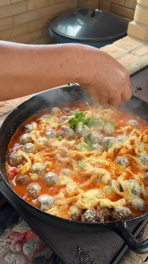Macarrão com massa caseira, almôndegas e muito queijo 🍝 ✔️ INGREDIENTES Massa 300 g de farinha de trigo 4 ovos Almôndegas 1 kg de patinho moído Tomate Cebola Alho Chimichurri Páprica Pimenta-do-reino Molho 2 latinhas de tomate pelado Finalização Mussarela Parmesão Cheiro-verde #receitas #chacara #macarrão #massafresca #macarrãoealmondegas