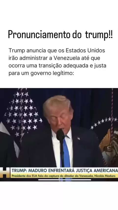 🚨 Após capturar Nicolás Maduro, Donald Trump anuncia que os Estados Unidos vão assumir o poder da Venezuela. TRUMP: MADURO ENFRENTARÁ JUSTIÇA AMERICANA Presidente dos EUA fala da captura do ditador da Venezuela, Nicolás Maduro