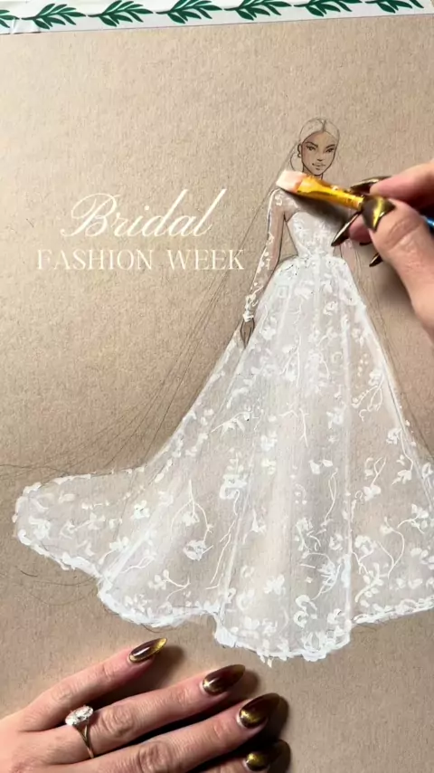 Bridal Fashion Week, uma visão em renda, por Petra Grebenau # nybfa # wedding # weddingdress # asmr # 2025bride # weddinggown # bride # fashionillustration # painting