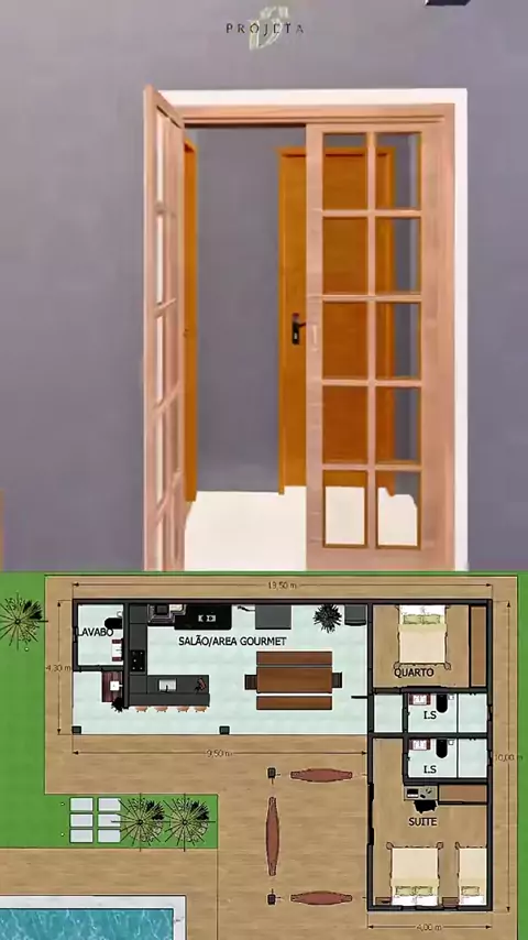 PROJETO P070 INVERTIDA - Edicula com 2 suítes Esse é vários outros modelos de projetos já disponível em nosso site! WWW.DSPROJETA.COM.BR #casadecampo #chacara #rancho #sitio #rustico