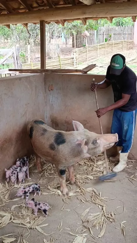 coloquei a serragem para os leitões