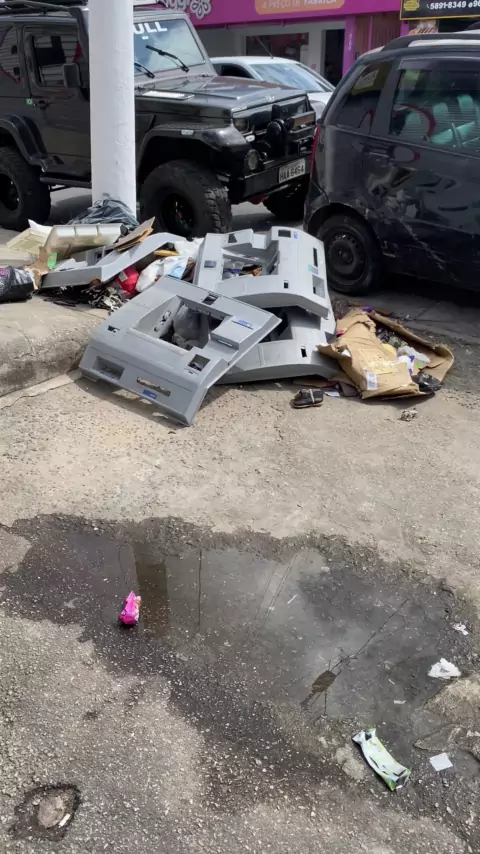 Pedaços de caixa eletrônico dispensados na avenida no capão redondo…. #noticia #capaoredondo #policia #ladrão #foryou