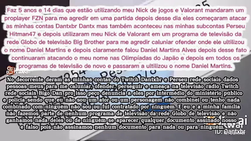 https://m.twitch.tv/dantxbr/home Daniel Martins Dantx Dantxbr Hitman47 Itszera e perseu eu nunca aceitei está humilhação pública que Thiago Lierfet Rosa weiber, João Azevedo, Juliete, William Bonner e FZN com apresentadores e jornalistas de televisão e rádio, e com colegas poderosos