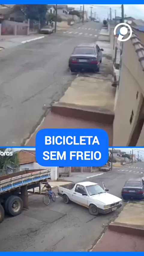 Garoto em bicicleta bate violentamente contra caminhão estacionado na rua e é arremessado.