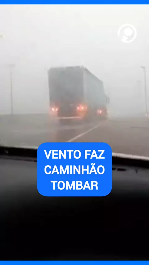 Vento faz caminhão tombar durante temporal em Porto Alegre.