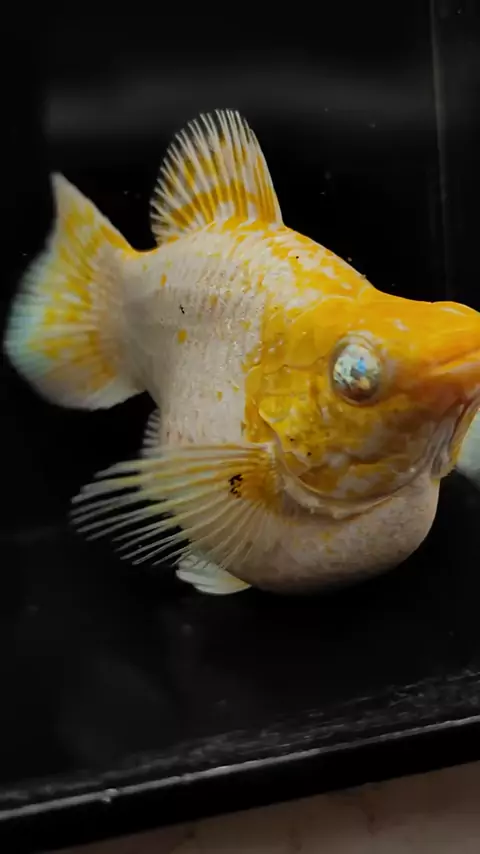 Efek dari bola matanya yang kristal, sehingga ikan molly ini tidak bisa berkedip.🗿 # #darrenfarm #mollylemonhead
