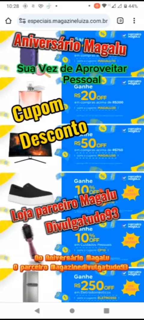#divulgatudo93 #Eletro25093 #cupomdesconto93 #Ultra10kvis #familiatopmil1000 veja um pouco no vídeo como eu mostro que os produtos comprados no site do parceiro divulgador Magalu saem mais barato pessoal usando os cupons Essa e a hora de aproveitar, porque realmente estão com Ótimos Descontos ,espero ter Alertado vocês, Corre lá no insta @davidgaraujo8divulgatudo nostorys Destaques pessoal 👍