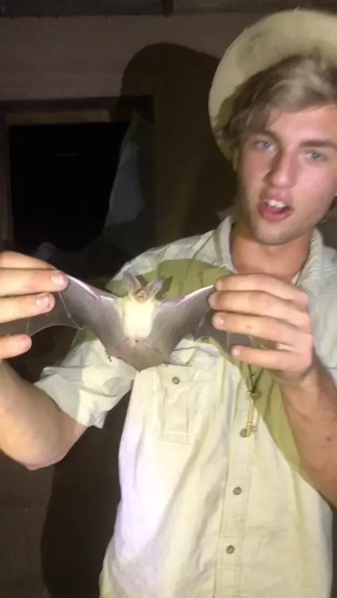 check out this hand caught Palladian Bat! I miss catching mammals. Isn’t he a beauty?? #bat #Kwai