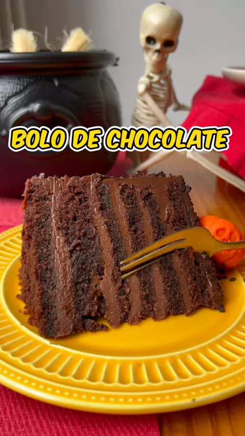 Bolão de Chocolate 🎃 . Comeria uma fatia desse bolo? 🥵 . Massa: 3 ovos 1 xíc de leite 1 xíc de óleo 1 xíc de açúcar mascavo 1/2 xíc de cacau em pó 2 xíc de farinha de trigo 1 🥄 de sopa de fermento 1 pitada de sal . Brigadeiro: 3 latas de leite condensado 2 caixinhas de creme de leite 2 🥄 de sopa de manteiga 3 🥄 de sopa de cacau em pó 150g de chocolate meio amargo . #bolo #Halloween #confeitaria #Receita #fy
