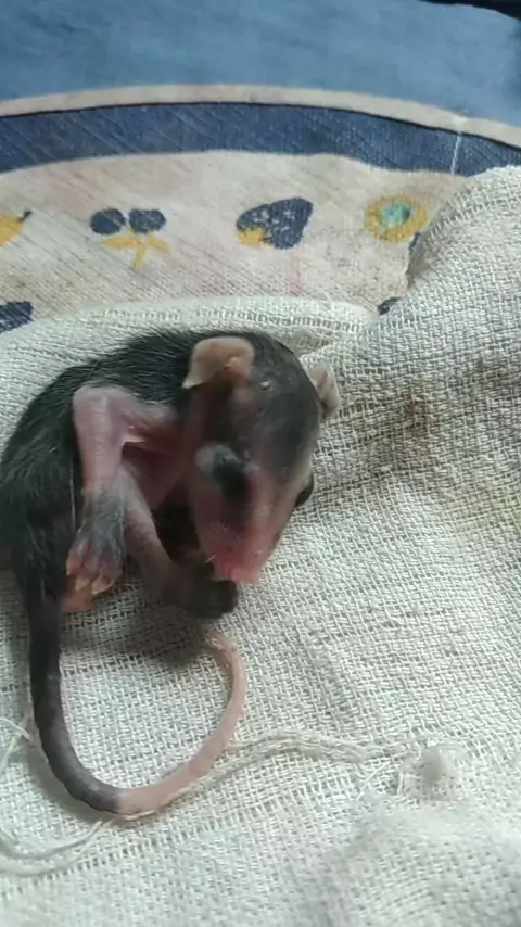 E o bebê timbu continua crescendo, já nasceu os pelinhos