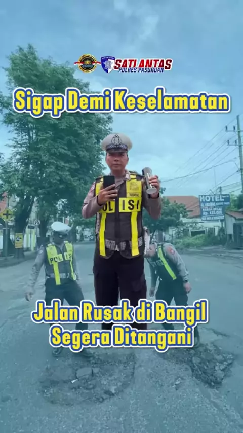 Tindak Lanjut Jalan Rusak Menindaklanjuti keluhan warga terkait jalan rusak di Bangil, Satlantas Polres Pasuruan segera melakukan pengecekan dan pengamanan di lokasi. Petugas memasang tanda peringatan serta berkoordinasi dengan instansi terkait agar perbaikan segera dilakukan demi keselamatan pengguna jalan. Satlantas Polres Pasuruan mengimbau kepada seluruh pengendara agar lebih berhati-hati saat melintas di jalan yang mengalami kerusakan. Kurangi kecepatan, jaga jarak aman, dan tetap fokus s...
