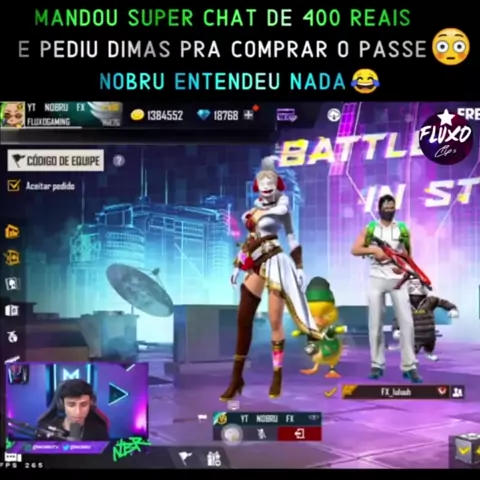 O menino mandou super chat de 400 reais e pediu dimas pra comprar o passe #Nobru #NOBRUTV #viral #Freefirehumor