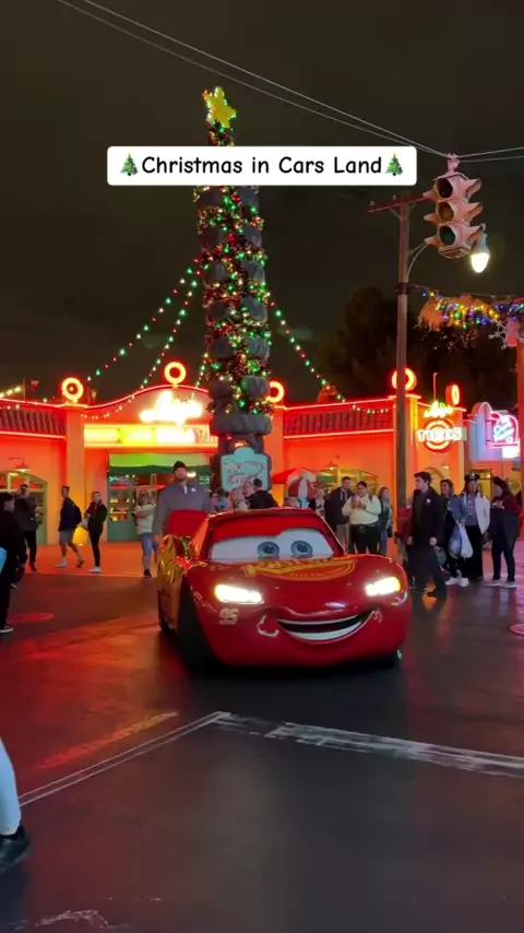 Christmas at night in Cars Land!#lighteningmcqueen#mater#cars#pixarcars#disneyland#carsland#disneyparks#christmas