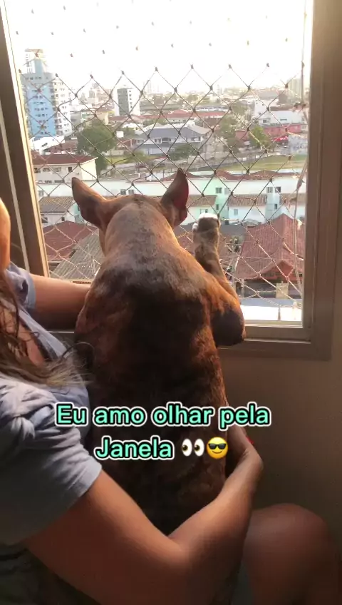 Eu amo olhar pela janela, antes que comecem a falar, eu tenho passeios de rotinas, amo minha casa e minha família 💜 #bullterrier #cachorros #familia #kwaii #viral