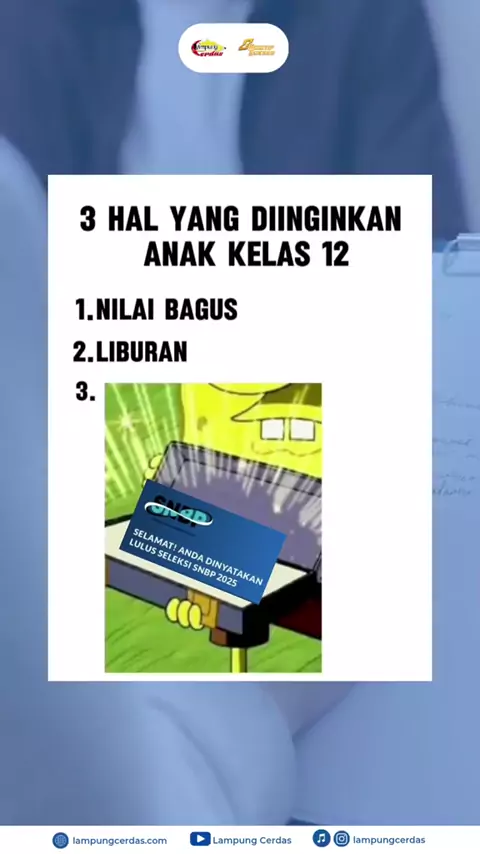 Udah tau belum nih program SNBT Plus dari Lampung Cerdas?✨ Jadi, SNBT PLUS itu program pendampingan online selama 6 bulan dengan strategi, trik, taktik dan senjata untuk LULUS UTBK SNBT dan BEASISWA yang sudah terbukti sejak tahun 2014🤩 Selain itu, masih banyak yang akan kamu dapatkan di program Premium SNBT PLUS ini😁 Kenapa Program SNBT Plus Layak Untuk Kamu Ikuti? ✅Terbaik dan satu-satunya program pembinaan lulus UTBK-SNBT yang secara fokus dan lengkap membahas strategi dan pola sukses SNBT...