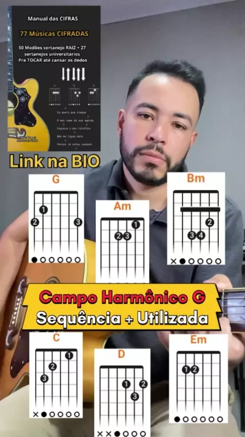 Campo Harmônico de G maior - sequência mais utilizada. #comotocarviolao #violaoiniciante #violao