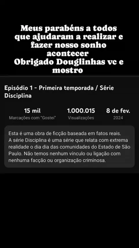 Sou grato por fazer parte dessa história Douglinhas e da família Disciplina. Batemos 1M no primeiro episódio obrigado gente. Segue o Delegado Montanha e a Série Disciplina também no YouTube, Tik tok e instagram. #delegadomontanha #seriedisciplina