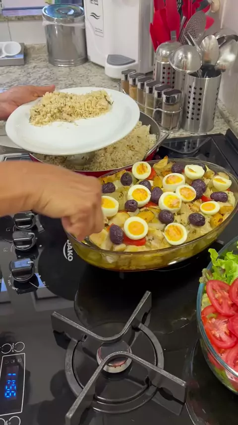 Bacalhau a Gomes de Sá 1,2 Kg de Bacalhau; 01 Kg de Batata; 1/2 Pimentão Vermelho e Amarelo; 01 Xícara (chá) Azeitonas Pretas; 250 ML Azeite; 150 Vinho Branco Seco; 02 Cebolas; 04 Ovos Cozidos; 1/2 Maço de Salsinha e Cebolinha; 05 Dentes de Alho; 02 Folhas de Louro; Sal a Gosto; 01 Colher (café) Pimenta do Reino; #receitas #amo #amocozinhar #deliciasdaeleni