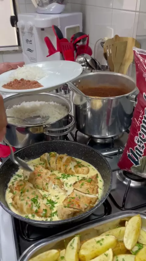 Frango ao Molho de Alho e Parmesão 1,2 Kg de Peito de Frango; 01 Xícara (chá) Parmesão Ralado; 05 Dentes de Alho; 05 Colheres (sopa) Manteiga; 1/2 Xícara (chá) Farinha de Trigo; 03 Colheres (sopa) Azeite; 03 Colheres (sopa) Salsinha; Sal e Pimenta do Reino a Gosto; 250 ML de Creme de Leite Fresco; 01 Pitada de Noz Moscada; #deliciasdaeleni #receitas #amo #amocozinhar