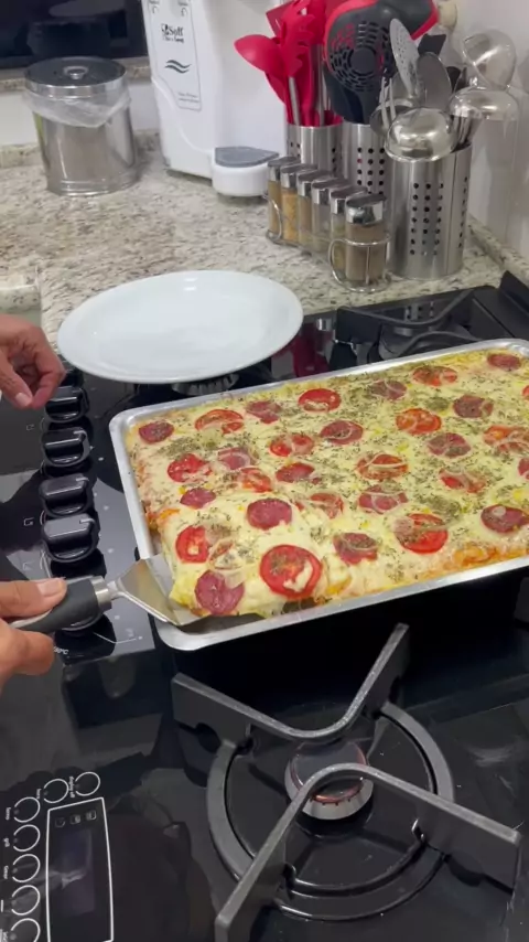 Pizza Sem Abrir Com Massa Mole 02 Xícara (chá) Farinha de Trigo; Água Até Dar o Ponto; 01 Colher (sopa) Açúcar; 1/2 Colher (sopa) Sal; 01 Ovo; 05 Gramas Fermento Seco; 50 ML Óleo; 300 Gramas Mussarela Ralada; 1/2 Calabresa; 02 Tomates; 03 Colheres (sopa) Molho de Tomate; 01 Colher (sopa) Orégano; 02 Cebolas; #receitas #amo #amocozinhar #deliciasdaeleni