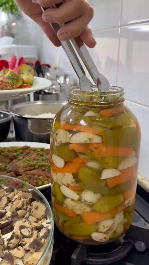 Conserva Mista de Legumes Ingredientes: 500 Gramas Jiló 01 Couve-flor 800 Gramas Cenoura 01 Kg Pimenta Doce 20 Dentes de Alho 500 Gramas Cebola Crua Para o Tempero: 01 Litro de Água 01 Litro Vinagre ½ Xícara (chá) Azeite 1 ½ Colher (sopa) Sal 01 Colher (sopa) Orégano 01 Colher (sopa) Pimenta Calabresa #receitas #amo #amocozinhar #deliciasdaeleni