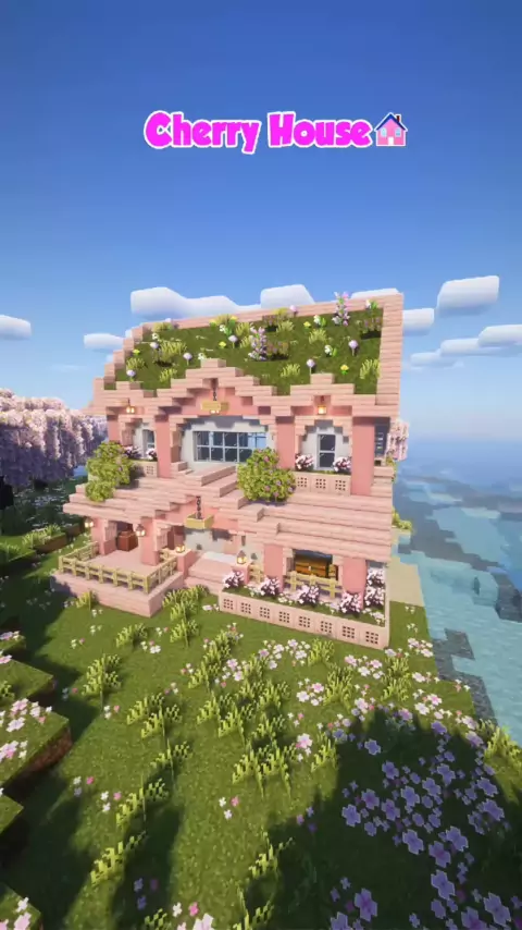 Cherry house pt-2 #minecraftbuilding #mimecrafttutorial #minecraftbedrock #minecraftdesigns ##Minecraft
