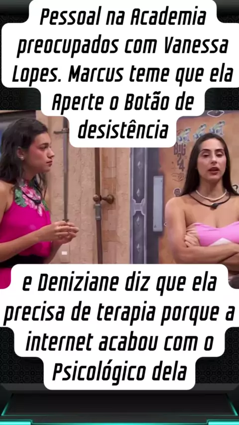 Pessoal na Academia preocupados com Vanessa Lopes. Marcus teme que ela Aperte o Botão de desistência e Deniziane diz que ela precisa de terapia porque a internet acabou com o Psicológico dela #ftvtrending #bbb24 #BomPraKWAI #kwainobbb