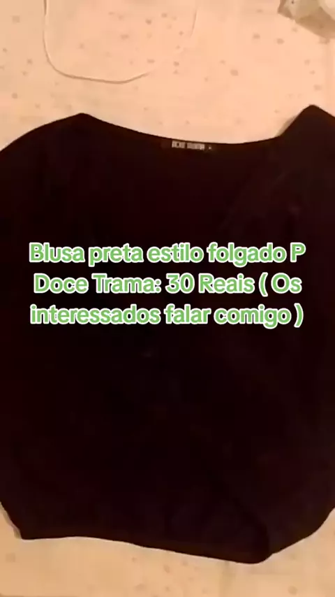 Blusa preta estilo folgado Doce Trama P Descrição: Linda e maravilhosa blusa com manguinhas curtas, uma blusa bem fresquinha de se usar e um pano elastano bem leve , vocês vão amar !! Condição: Novo Cor : Preto Tamanho: P Aonde eu posso usar esta blusa ? Pode usar na casa de alguém, restaurantes, festas, parques etc ... Venham e comprem meninas !! #BLUSA