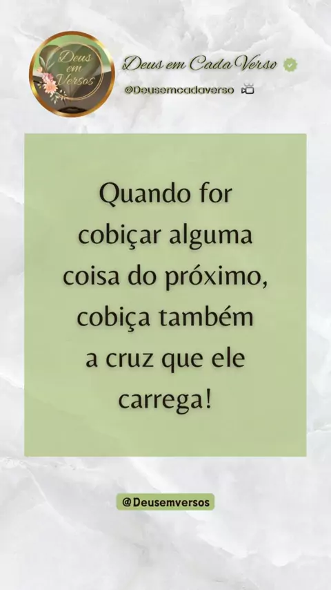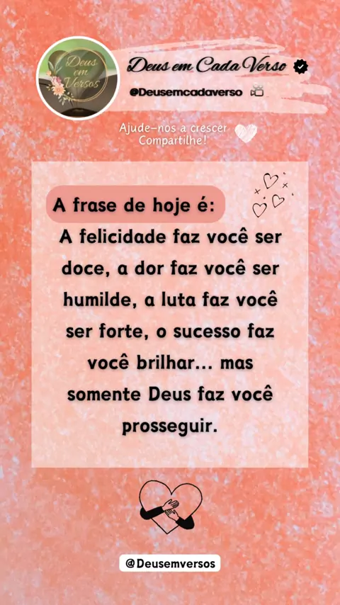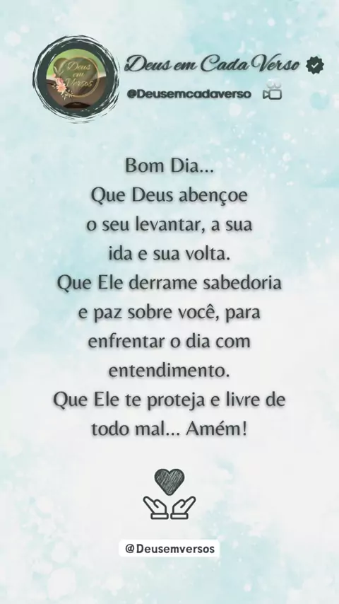 Bem-vindo(a)! Página OFICIAL Deus em cada verso. Descubra inspirações diárias e mergulhe na sabedoria divina. Siga para receber doses diárias de fé e esperança! Siga no TikTok: Deus.emcadaverso